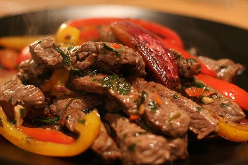Once the beef is off the grill pan and resting, add the bell peppers and onions tossed with lime juice and olive oil, if using. Grill the mixture for 7 to 8 minutes until the vegetables are just barely limp.