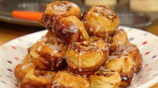 While muffins are baking, mix up the powdered sugar and lemon juice. Drizzle over the hot mini cinnamon buns and serve.