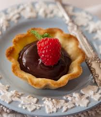 To serve, spoon or pipe the chocolate filling into each shell. Garnish with a chocolate curl (*) and a dusting of powdered sugar or with a fruit.