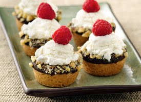 Prepare cookie cups through step 5 omitting jam. Store covered up to two days at room temperature. When ready to serve, fill with jam, ice cream and top with raspberry.