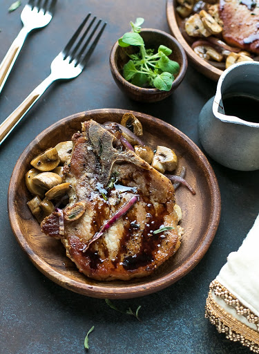 One Pan Pork Chops With Balsamic Mushrooms And Onions
