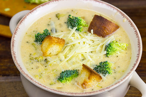 To ensure a creamier soup, purchase a block of cheddar cheese and shred it yourself.