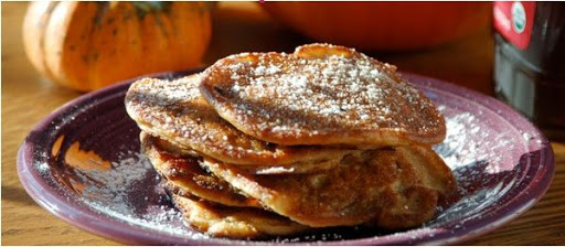 You may be tempted to think pumpkin would make a dense and heavy pancake but you would be wrong in this case. Feast your eyes on these autumn beauties and celebrate the passing of pumpkin season in delicious style! Put mini-chocolate chips in for eyes and a mouth, and these suddenly become Jack-O-Lantern Pancakes and your kids will beg for more!