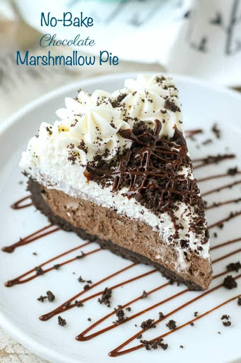 This No-Bake Chocolate Marshmallow Pie is heaven on earth! The Oreo crust is filled with a fluffy chocolate marshmallow mousse and topped with whipped cream.