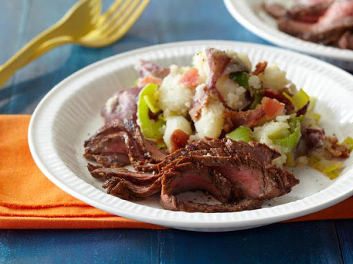 Marinated Grilled Flank Steak with BLT Smashed Potatoes