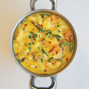 Heat oven to 350°. Heat butter in a 6-qt. saucepan over medium-high heat; add flour, and cook, stirring, until smooth, about 2 minutes. Add milk and cream; simmer. Cook until thickened, about 2 minutes. Remove from heat and stir in ¾ of the cheddar along with the ham, blue cheese, tomatoes, onions, scallions, and bacon; season with salt, pepper, Tabasco, and nutmeg, and stir in pasta. Transfer mixture to a 9″ x 13″ baking dish. Sprinkle with remaining cheddar. Top with bread crumbs; bake until golden, about 25 minutes.
