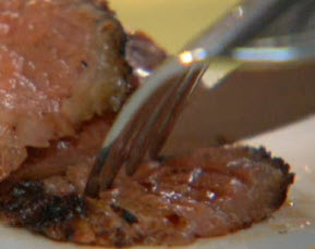 5. Place steaks over hotter part of grill and cook until browned and charred on both sides and center registers 125 degrees for medium-rare or 130 degrees for medium, 3 to 4 minutes per side. If steaks have not reached desired temperature, move to cooler side of grill and continue to cook. Transfer steaks to clean wire rack set in rimmed baking sheet, tent loosely with aluminum foil, and let rest for 10 minutes. Slice meat thin against grain and serve.