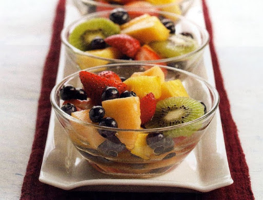 Mix fruit, confectioners' sugar and vanilla extract in large bowl.