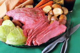As an American we associate Corned Beef and Cabbage as a main dish of the Irish. When in fact you may have difficulty finding such a dish in Ireland. They don't eat that much cured beef and this dish was probably made popular by those who immigrated to Ireland and missed the taste of cured beef from their homeland. Anyway, here is the dish American think of when they say "Corned Beef and Cabbage."