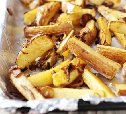 of seasoning and the red onion, then tip onto a baking tray. Roast for 15-20 mins