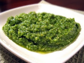 In place of basil and pine nuts, use 4 cups fresh cilantro (including stems) and 1/2 cup toasted walnuts.