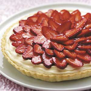 Arrange strawberries over filling; brush with jelly. Refrigerate for at least 2 hours. Remove sides of pan before serving. Yield: 6-8 servings.