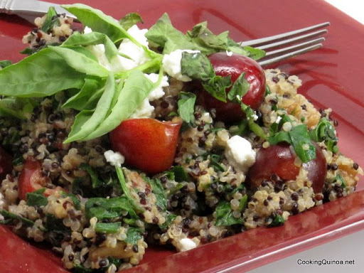 3.Cut remaining cherries in half. Stir most of them into quinoa. Salt and pepper to taste.