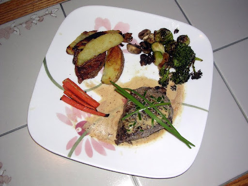 - 1 T chopped chives and whole sprigs of chives for garnish