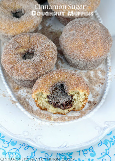 Working one at a time use an ice cream scoop to fill the muffin cups halfway then scoop rounded teaspoons of the filling up and press lightly into a ball(they don't have to be perfect), place into the center of the batter and gently press down. You can cover the filling with a spoon full of batter for traditional muffins or leave as is for muffins that look like doughnuts on top. Repeat until all the muffins are made.