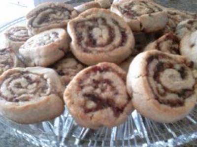 Wrap each log in plastic wrap and refrigerate overnight. (If necessary, roll the logs with the palm of your hands to reshape into rounds.) The next day slice the cookies into 1/8 to 1/4-inch slices; bake in a 375 degree oven for 10-15 minutes, depending upon how thickly they were sliced.