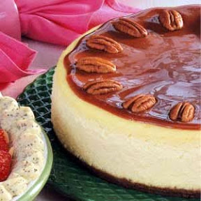 In a food processor or blender, combine graham crackers and pecans; cover and process until fine and crumbly. Stir in butter. Press onto the bottom of an ungreased 10-in. springform pan. Chill for 30 minutes. In a bowl, beat cream cheese and sugar until smooth. beat in flour. Add eggs, beating on low speed just until combined. Stir in sour cream, milk and vanilla. Pour into crust. Bake at 325° for 75-80 minutes or until center is almost set. Cool on a wire rack for 10 minutes. Carefully run a knife around edge of pan to loosen; cool for 1-1/2 hours. Chill. For topping, heat 1/2 cup sugar in a heavy saucepan over medium-low heat, without stirring, until melted and golden brown, about 15 minutes. Reduce heat to low; gradually add cream and remaining sugar (melted sugar will harden). Cook and stir until sugar is completely melted. Continue cooking, without stirring, over medium heat until a candy thermometer reads 225°. Remove from the heat; stir in butter and vanilla. Cool to room temperature. Spread topping evenly over cheesecake (do not scrape sides of pan). Garnish with pecan halves. Chill overnight. Remove sides of pan. Refrigerate leftovers. Yield: 12-14 servings. Nutrition Facts: 1 serving (1 slice) equals 497 calories, 32 g fat (16 g saturated fat), 155 mg cholesterol, 201 mg sodium, 47 g carbohydrate, 1 g fiber, 7 g protein. Caramel Praline Cheesecake published in Taste of Home April/May 2001, p64