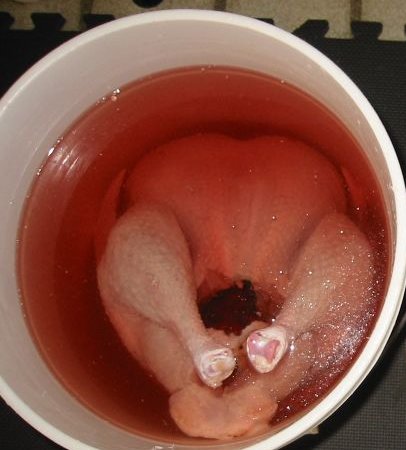 * *When* ready to cook, *remove* from brine, *rinse well* and pat dry. *Allow* to dry at room temp for about 1/2 hour then proceed with whatever recipe you are using.