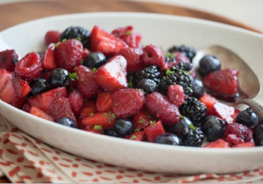 Place mint-sugar in a large bowl and add strawberries, blackberries, blueberries and raspberries. Gently toss until evenly combined.