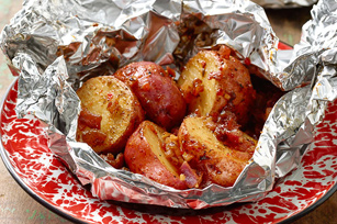 SPOON onto 4 large sheets heavy-duty foil; fold to make 4 packets.