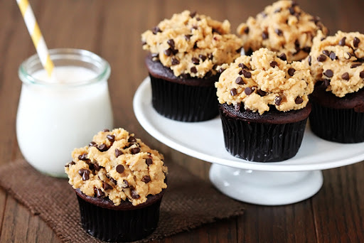 Chocolate Cupcakes With Peanut Butter Cookie Dough “Frosting”