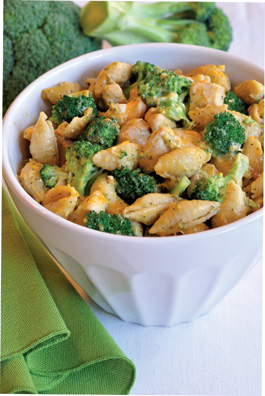 Chicken, broccoli and pasta cooked in a single skillet make for an easy family meal. Shredded cheese rewards you for eating your vegetables.