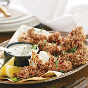 Yup, these are fancied-up fish fingers. Just healthier, yummier and frenchified. Crush the almonds in a resealable plastic bag using a rolling pin or whirl briefly in a food processor.