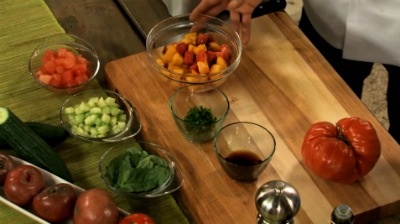 2.) Pulse lightly to create liquid, but not too long so you leave chunks of the fruit and vegetables.