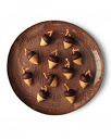 2.Using the palms of your hands, roll dough into 1 1/2-inch oblong "acorns" (you should have 36), flatten 1 end of each a bit with your fingertip, and place on a waxed paper-lined rimmed baking sheet. Refrigerate 30 minutes.