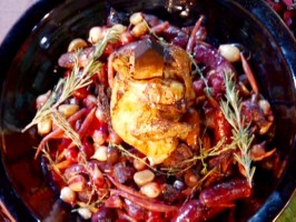 Vampire Chicken with Blood Braise (red wine & beet liquid)