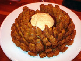 Mix cornstarch, flour, and seasonings until well blended. Add beer and mix well. Cut about 3/4" off top of onion and peel. Cut into onion 12 to 16 vertical wedges, but do not cut through bottom root end. Remove about 1" of petals from the center of the onion. You may want to separate the onion petals slightly, but do not do this too much or you will destroy the onion. Dip onion in seasoned flour; remove excess by shaking. Separate petals to coat thoroughly with batter. Dip in batter. Dip in flour mixture again. Gently place in fryer basket and deep-fry at 375 to 400 degrees for 1 and 1/2 minutes. Turn over and fry an additional 1 and 1/2 minutes. Drain on paper towels. Place onion upright in a shallow bowl and remove center core with circular cutter or apple corer. Serve hot with Creamy Chili Sauce.