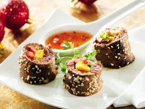These Asian-inspired rolls lend sophistication to any party platter. Outside round quick-fry steaks are perfect for this quick and satisfying holiday recipe.