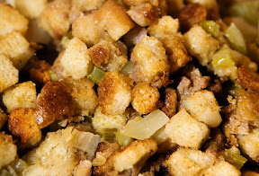 I have hesitated to include our stuffing recipe because it is one of those recipes where it is hard to give exact measurements. You can adjust any of these ingredients to suit your taste and if you want, you can add different things to the dish.