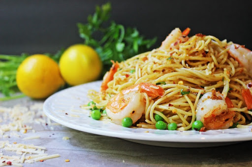 Shrimp Scampi Pasta with Parmesan & Peas
