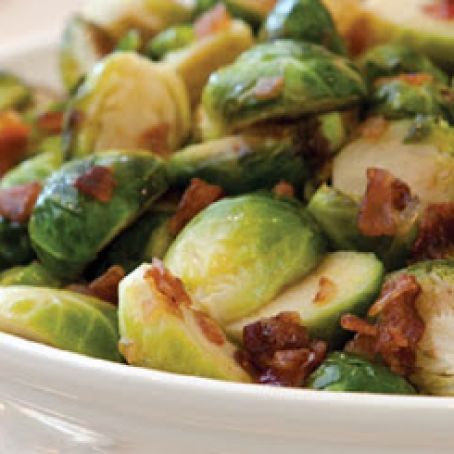Bake for 20 minutes. In a small bowl, combine honey and vinegar. Remove pans from oven; stir half of honey mixture into each pan of Brussels sprouts and spread in a single layer. Rotate position of pans on oven racks. Bake for 5 minutes or until Brussels sprouts are browned and just tender. Sprinkle with salt and pepper. Toss with bacon just before serving.