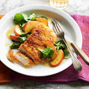 Stir honey, mustard, and vinegar into skillet drippings. Add apple slices; cook about 3 minutes until crisp-tender. Toss in spinach; sprinkle with 1/4 teaspoon of the salt.