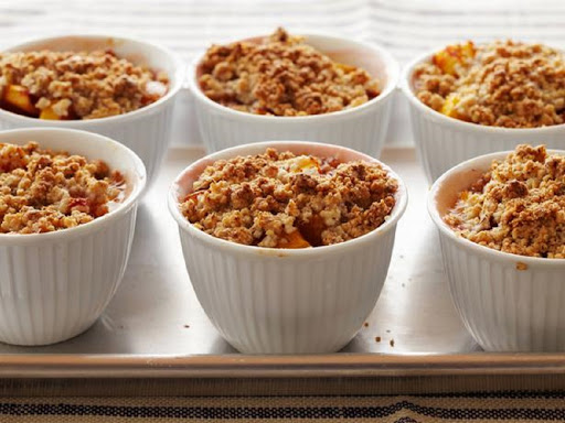 Sprinkle the topping evenly over the peaches. Bake until the fruit is bubbling and the topping is golden brown and crisp, 40 to 45 minutes. Serve warm or at room temperature with vanilla yogurt or frozen yogurt if desired.