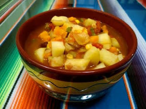 Place the onion in a large non-stick pot and sauté over medium high heat, stirring occasionally, until browned. Remove corn kernels from cobs. Add vegetable broth to the pot and bring to a boil. Add corn kernels and all the rest of the ingredients. Cover and simmer for 15 minutes, until all vegetables are tender. Garnish with some fresh chopped cilantro before serving, if desired.