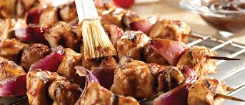 Cook on grill for 15 minutes, or until meat is cooked through. Turn skewers, and baste often with sauce during cooking.