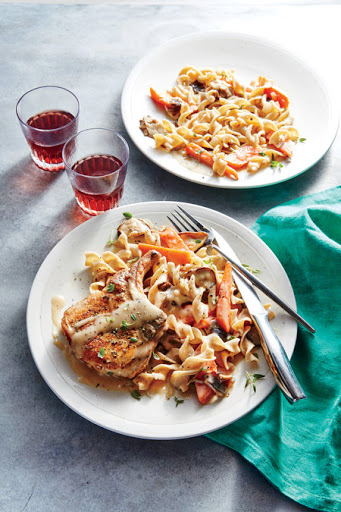 A full-plate dinner simmers to saucy, savory perfection in the slow cooker. To end up with super-succulent pork, don't overcook the chops in the pan before adding to the slow cooker. Just a couple of minutes per side will be enough to achieve nice color. Don't be afraid of the time, you will only be actively preparing and cooking for about 20 minutes as the rest cooks away in the slow-cooker for 7 hours until the meat and vegetables are tender.