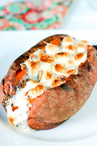 Baked Sweet Potatoes with Marshmallow Pecan Topping Recipe