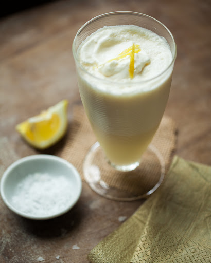 Gently whisk the cream into the slush in the bowl, just to blend. Pour or spoon into glasses, sprinkle with a few flakes of salt.