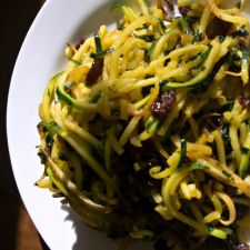 9. Add noodles, soya sauce, vinegar & finely chopped greens.