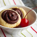 2. Shape dough into 1-inch balls. Place balls about 2 inches apart on an ungreased cookie sheet. Press your thumb into the center of each ball. Place a cherry in each center.