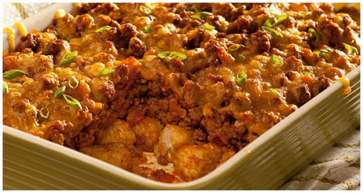 Pour beef mixture over hot Tater Tots; sprinkle with cheese.