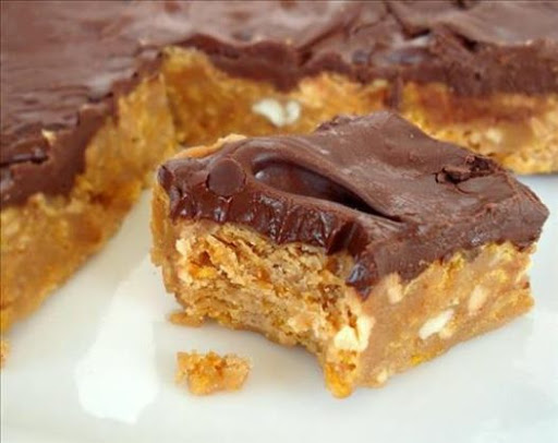 Pat into a 8x8 lightly greased pan. (I line my pan with foil and then lightly spray it. When it is time to cut them, the foil lifts right out.).