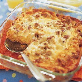 4. Adjust oven rack to middle position and heat oven to 325 degrees. Let casserole stand at room temperature for 20 minutes. Uncover casserole and sprinkle remaining 1/2 cup cheese over top. Bake until edges and center are puffed, 45 to 50 minutes. Cool 5 minutes. Cut into pieces and serve.