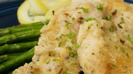 4) Coat chicken in panko mixture and place in baking tray. Surround with asparagus. Top with leftover lemon butter from the chicken bowl, remaining parmesan cheese and lemon slices.