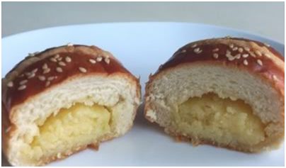 Let rise, lightly covered, until double in size on a lightly greased tray. When ready, brush with eggwash. Then sprinkle a little sesame seeds onto the buns and pipe 2 lines of the Mexican Topping on top of each bun.