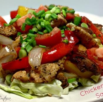 Slice the chicken into bite-size strips and season with a dried fajita seasoning and fresh ground black pepper.